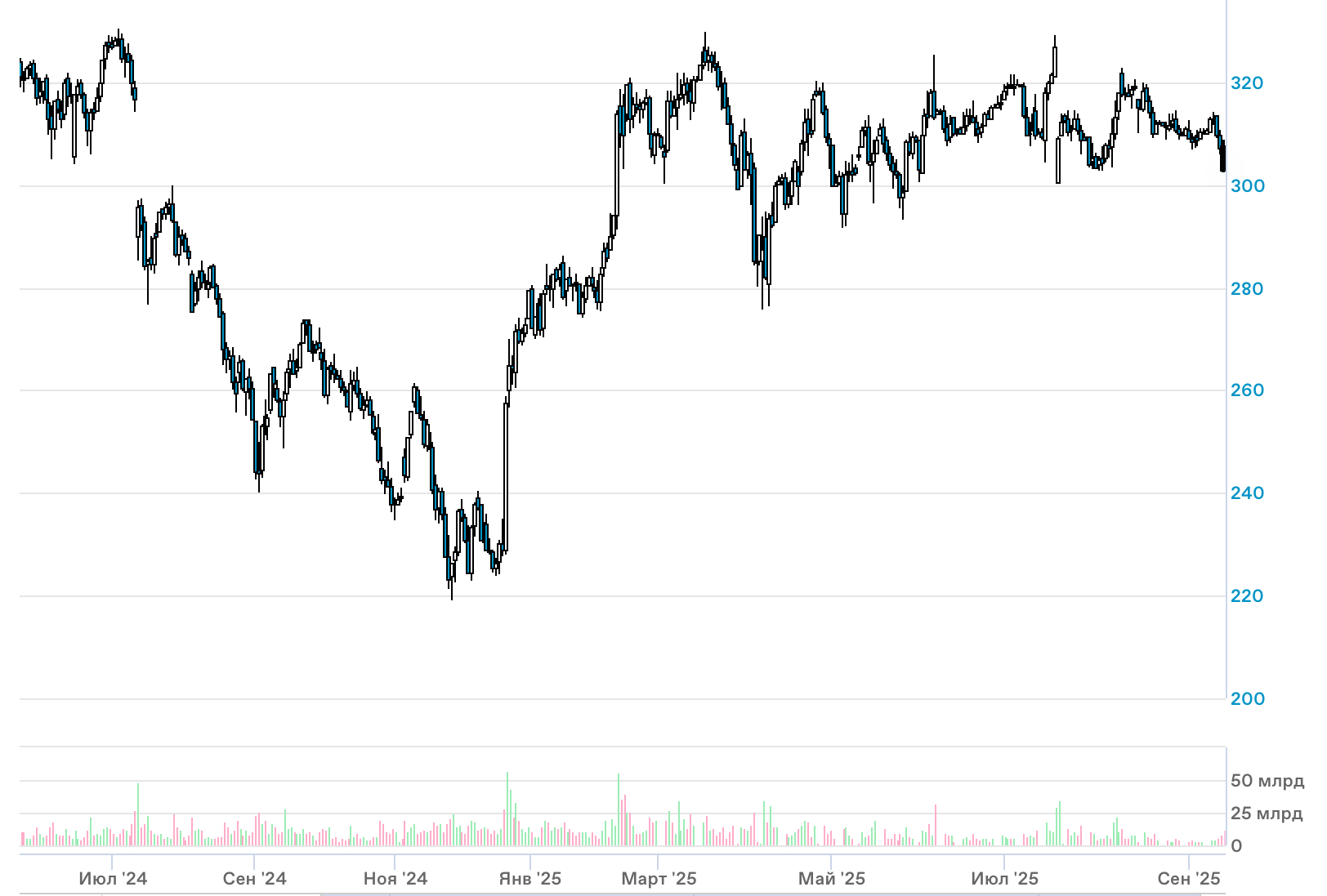 - По нашим прогнозам, Сбер в 2025 году покажет результаты выше сектора и увеличит чистую прибыль на 2,4% г/г, до 1,62 трлн руб. По итогам 2024 года дивиденды составили 34,84 руб. на акцию, обеспечив доходность 10,6% годовых. По итогам 2025 года мы ожидаем дивиденды в размере 36,09 руб. и доходность 11,6% годовых.