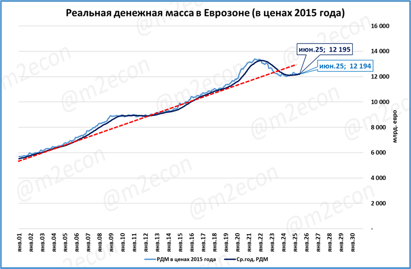 Другая ситуация в Еврозоне. Там РДМ не только вернулась на линию многолетнего тренда, но и «провалилась» ниже её.