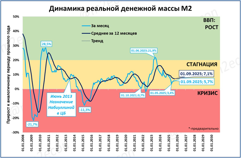 Рост реальной денежной массы (РДМ) в августе замедлился до +2,6%.
