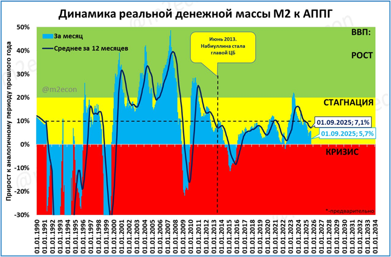 ● Денежный светофор: сейчас ЦБ включил экономике жёлтый свет (= стагнационные темпы роста ВВП). И упорно его удерживает.