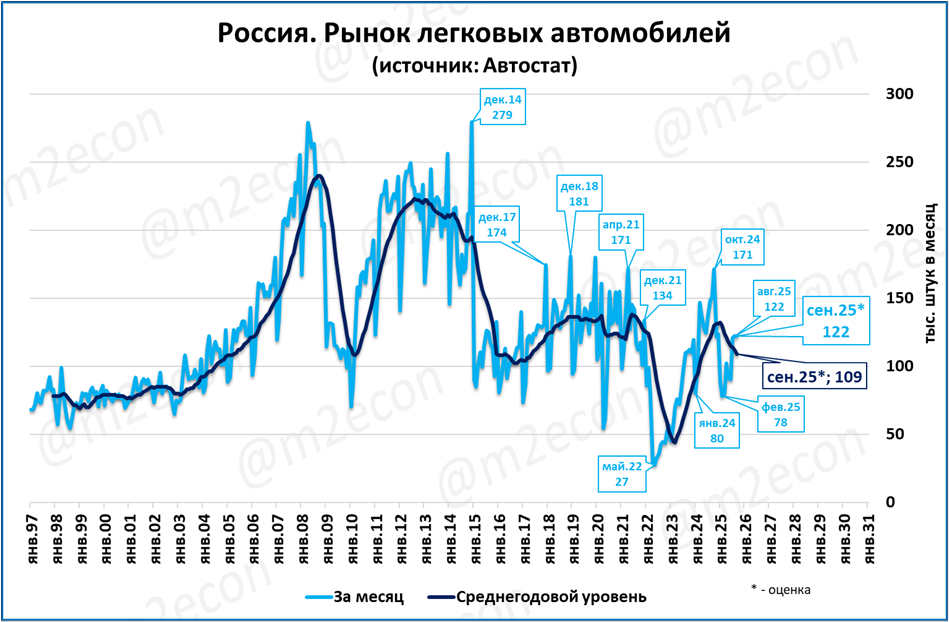 Оценка рынка легковых в сентябре: 122 тыс. (-19%)
