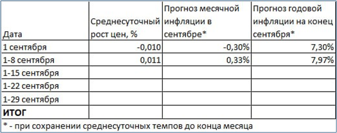 Среднесуточный рост цен с 1 по 8 сентября составил 0,011%.