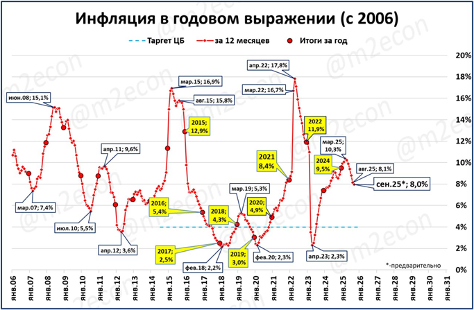 Если такой темп сохранится до конца месяца, то по итогам сентября годовая инфляция составит 8,0%