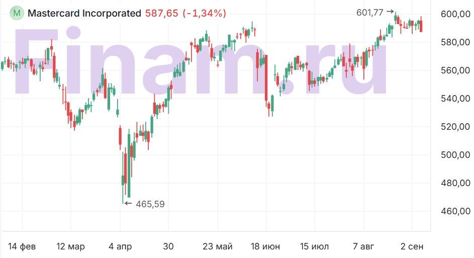 В том числе оценка целевой цены акций Mastercard аналитиками Wells Fargo Securities составляет $650 (рейтинг «Выше рынка»), Macquarie Research — $655 («Выше рынка»), Evercore ISI — $600 («На уровне рынка»).