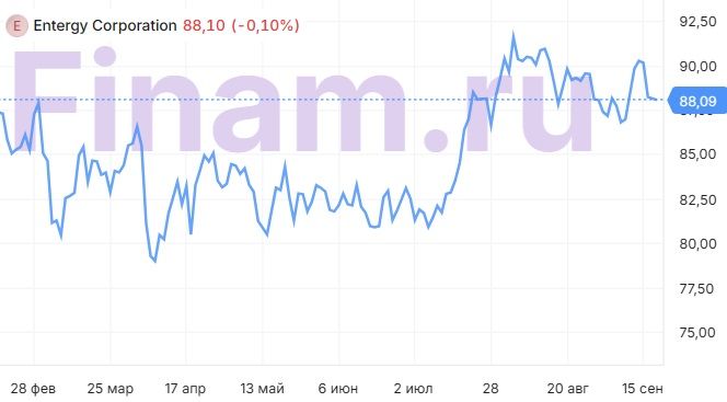 Финансовые результаты за II квартал 2025 г. Выручка увеличилась на 12,7% г/г и составила $3,33 млрд, а скорректированная прибыль на акцию (EPS) выросла на 9,4% г/г, до $1,05. Основными драйверами роста стали увеличение объемов промышленного потребления электроэнергии на 11,8% и рост оптовых продаж на 35%. Руководство Entergy подтвердило среднесрочный прогноз, предполагающий достижение скорректированного EPS в диапазоне $3,75–3,95 в 2025 г. (+5,5% г/г), а также сохранение среднегодового темпа роста этого показателя на уровне 8% в период 2024–2028 гг.