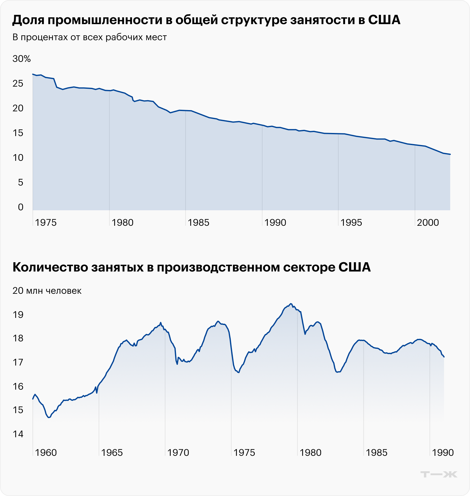 Высокие ставки и дорогой доллар делали бизнес в США менее рентабельным. А чтобы снизить издержки, американские компании начали выводить производства в другие страны. В 1980-е для них открылся доступ к рынкам труда Южной Кореи и Китая, где было много дешевой рабочей силы. Кроме того, экономический кризис в Мексике сделал производство в этой стране более выгодным по сравнению с США.