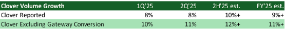 Конечно, если интеграция CardFree затянется или экономический эффект от сделки с AIBMS будет проявляться медленнее, чем ожидается, темпы органического роста могут быть ниже. Однако технологическая платформа Carat и растущая доля программного обеспечения в Clover снижают колебания рентабельности, а управляемость европейским бизнесом после закрытия сделки повышается.