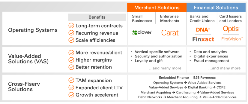 Fiserv (NYDE: FI) — это крупный поставщик инфраструктуры для банков и платежных систем. Компания зарабатывает на двух основных направлениях: