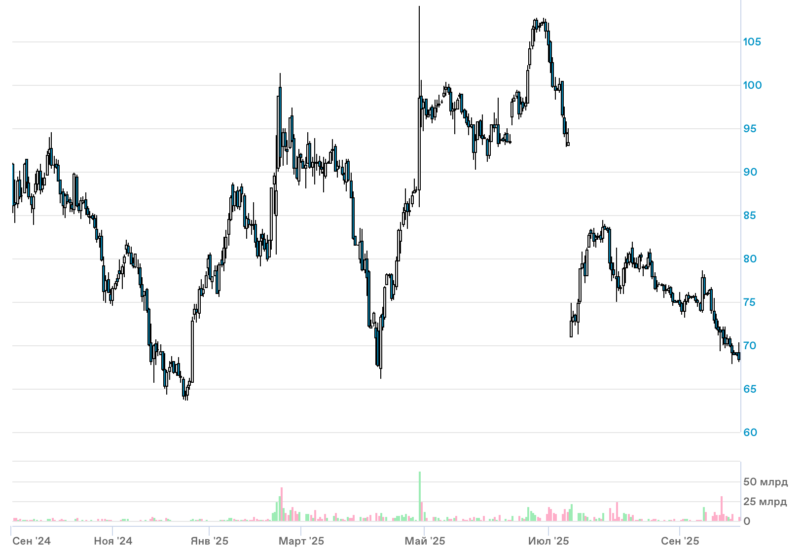 При этом бизнес-план банка предполагает замедление роста активов и сокращение доли розничного кредитования, что снизит потребность в капитале. Такой сценарий открывает возможность для сохранения щедрых дивидендных выплат — на уровне 50% прибыли. По итогам 2025 года дивиденд на акцию может составить около 19,2 руб., что соответствует доходности около 28%.