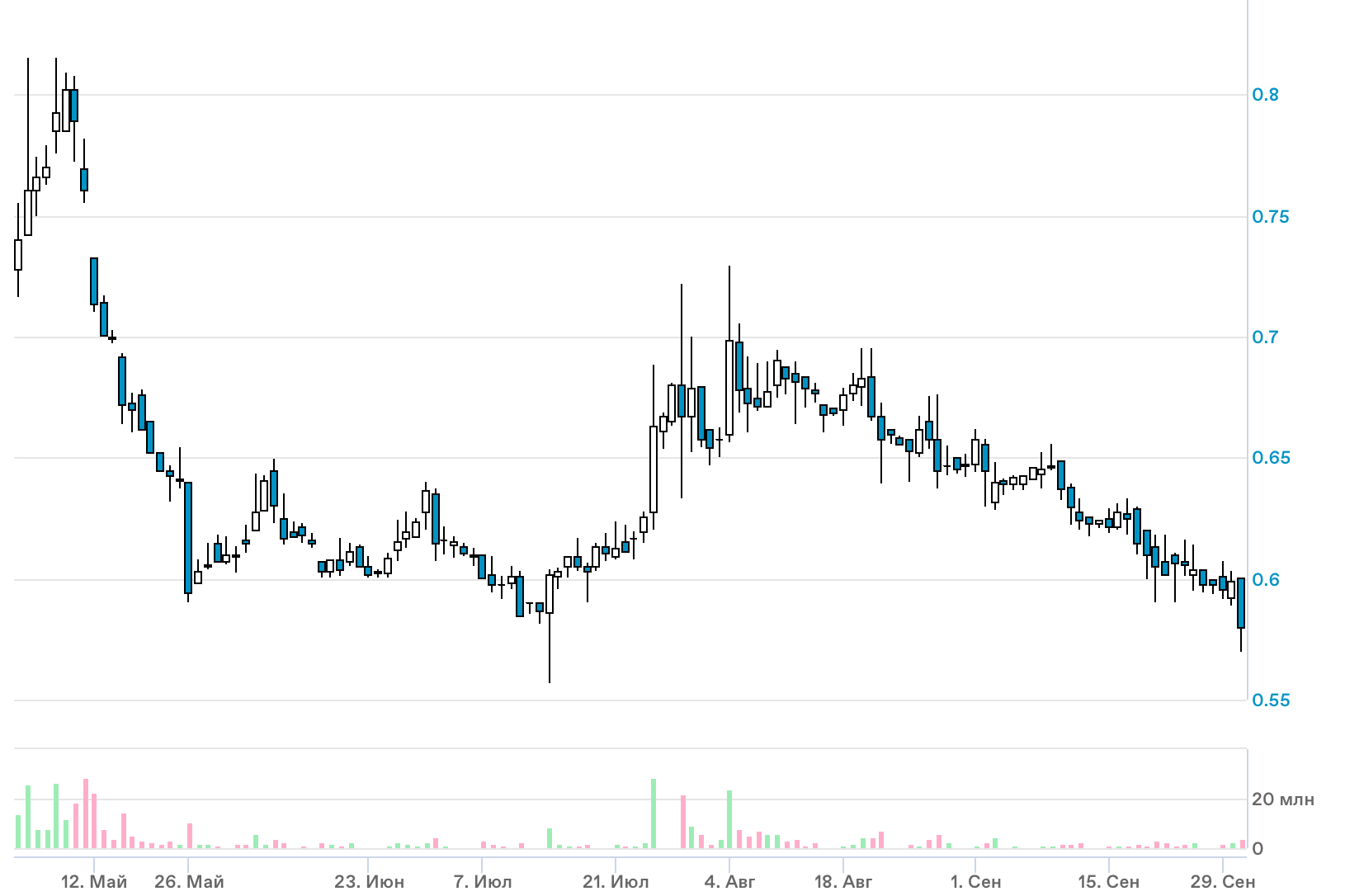 Расчётное значение справедливой стоимости компании снижено до 0,7710 руб./ао против 0,9662 руб./ао в рамках предыдущей оценки. С учётом динамики цен акций компании в последние месяцы эта оценка, тем не менее, предполагает 30%-ный потенциал роста и рекомендацию «покупать».