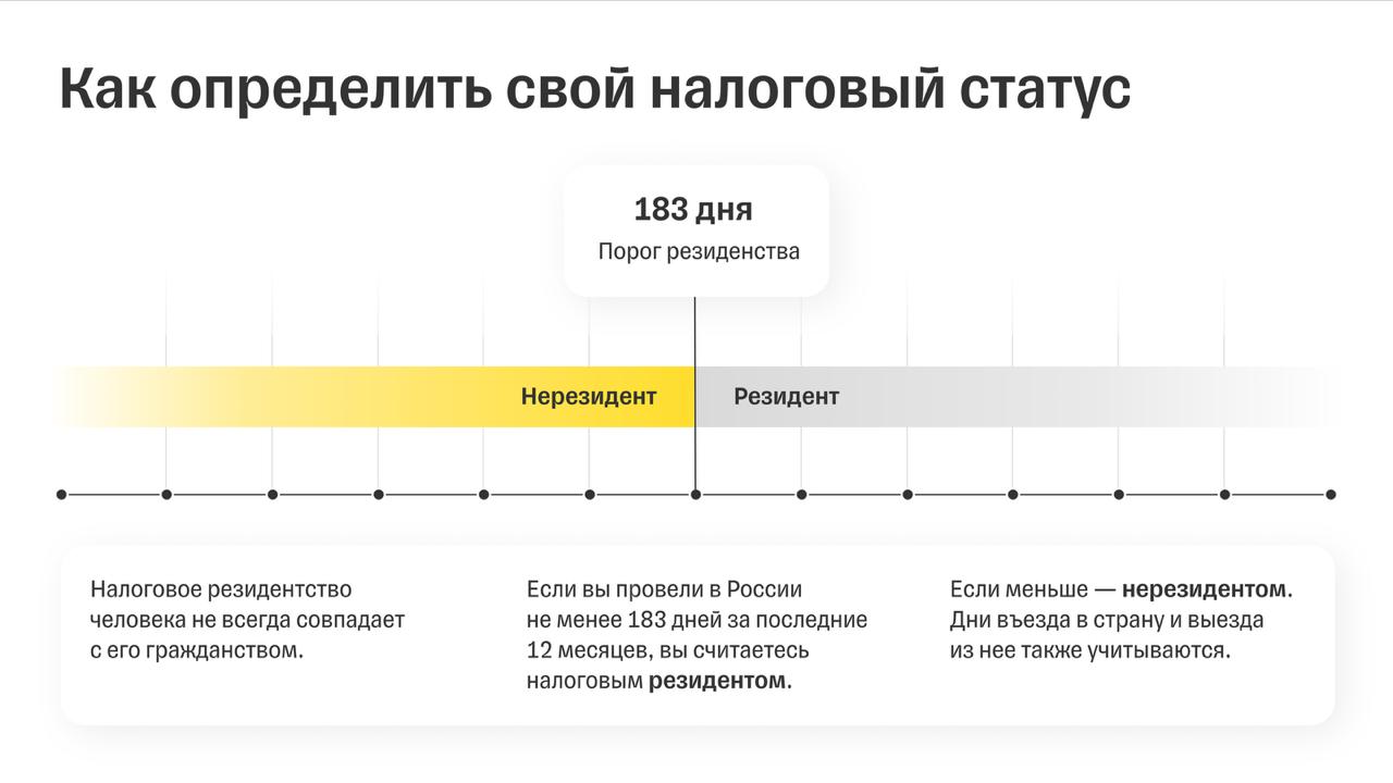 Если вы провели в России не менее 183 дней за последние 12 месяцев, вы считаетесь налоговым резидентом.