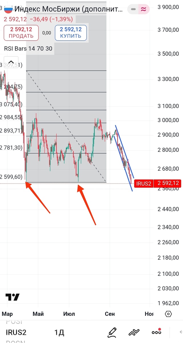 ➡️Мы находимся в медвежьем тренде. Ближайшая поддержка 2600, 2520. А далее локальный минимум на 2370. Туда нацелены наши акции сейчас. Я, естественно, хрустальным шаром провидения не обладаю. Но по моим ощущениям, движение вниз продолжится, с естественными техническими отскоками.