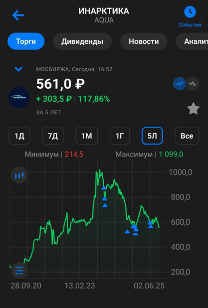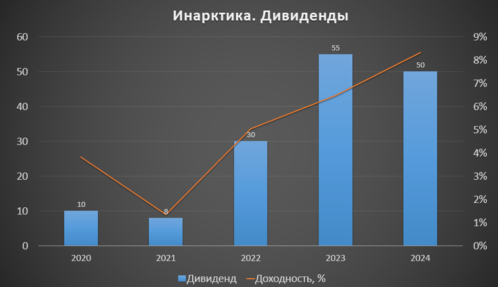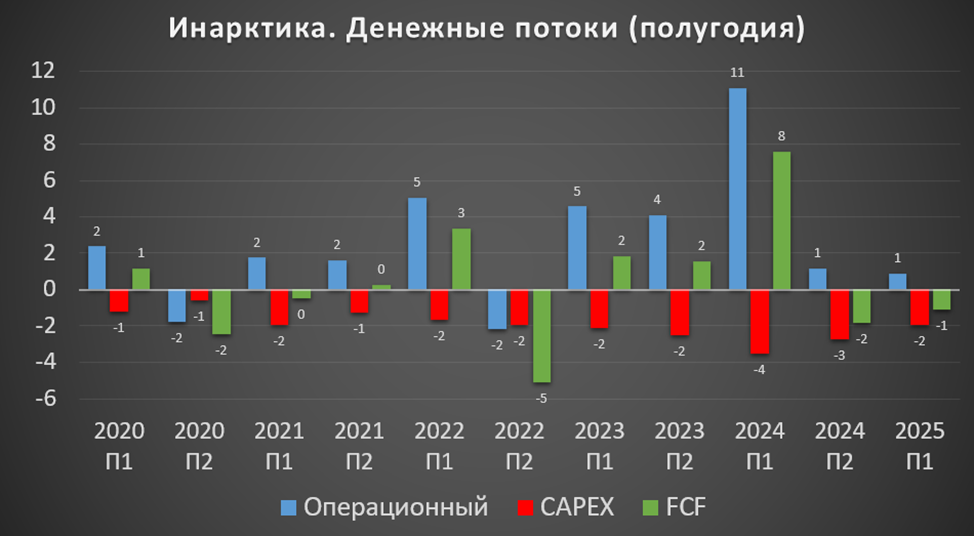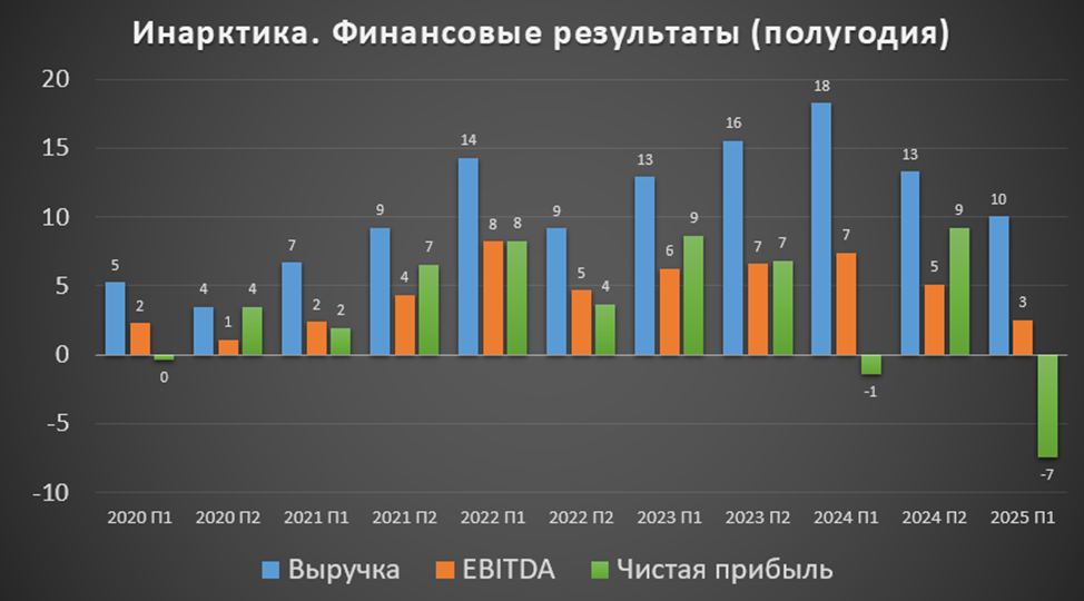 Из последних новостей, Инарктика пока не рассматривает выплату дивидендов по итогам I полугодия 2025, т.к. чистая прибыль по итогам этого периода "не очень подходящая" для дивидендов.