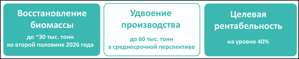 Сейчас биомасса постепенно восстанавливается. Но поскольку цикл выращивания атлантического лосося и морской форели длится около двух лет, нынешнее увеличение биомассы сможет только в 2026 году конвертироваться в рост объемов реализации.