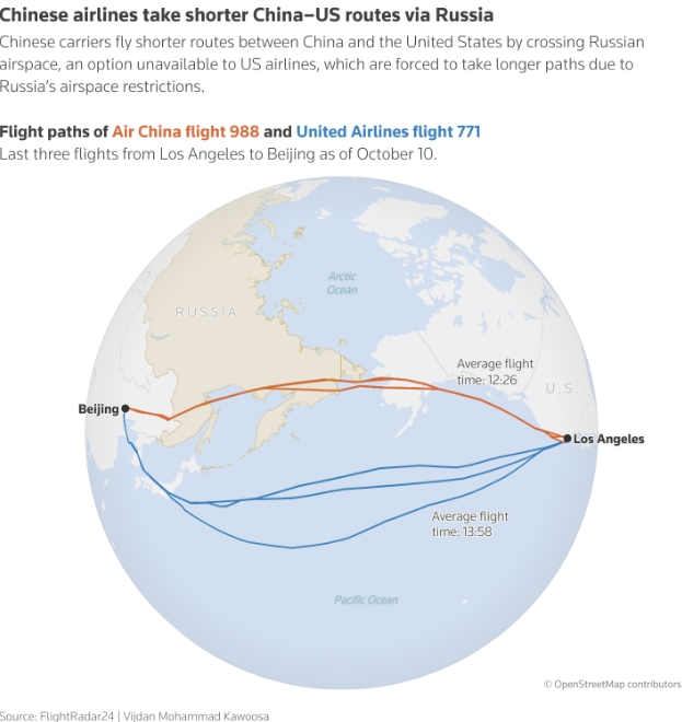 Китайские авиакомпании выигрывают от сокращения времени полёта и расхода топлива, используя российское воздушное пространство. Американским авиакомпаниям запрещено летать над Россией с 2022 года. Грузовые рейсы не включены в предложение США.