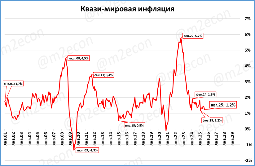 Чтобы посчитать реальную (не номинальную) динамику, мы также считаем мировую инфляцию по своей методике. В августе она составила 1,2% годовых.