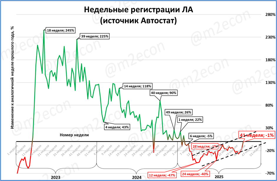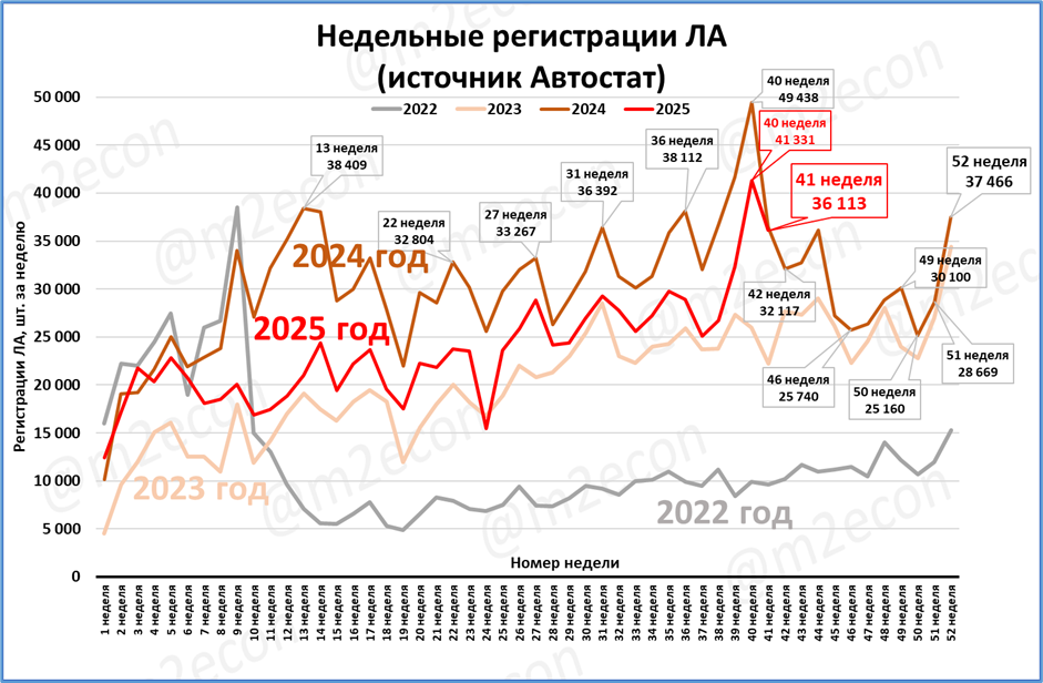 По данным агентства «Автостат», регистрации легковых автомобилей на 41 неделе составили 36,1 тыс.