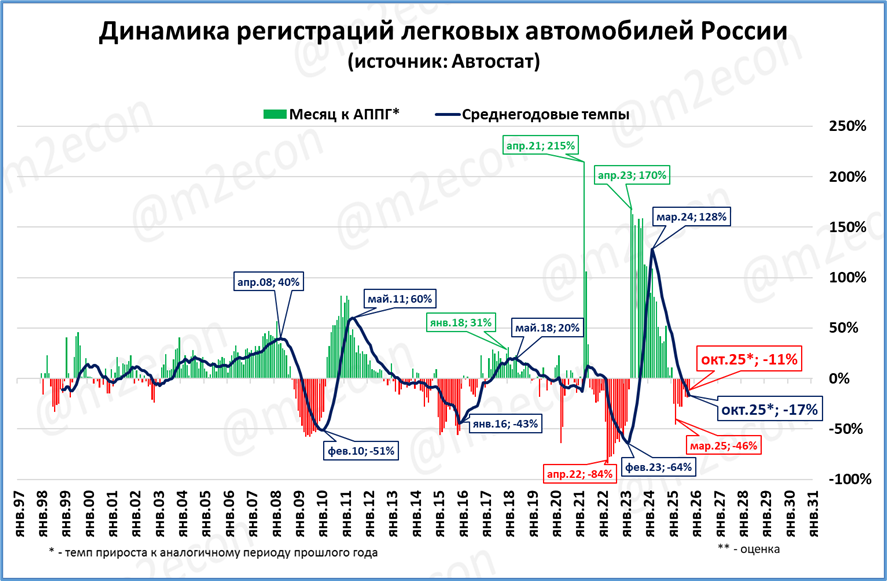 Мы ранее опасались, что падение в октябре ускорится из-за высокой сравнительной базы прошлого года. Но такого не произошло. Это очень позитивный сигнал для рынка легковых автомобилей.