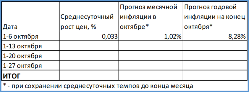 Если такой темп сохранится до конца месяца, то по итогам октября годовая инфляция поднимется до 8,3%.