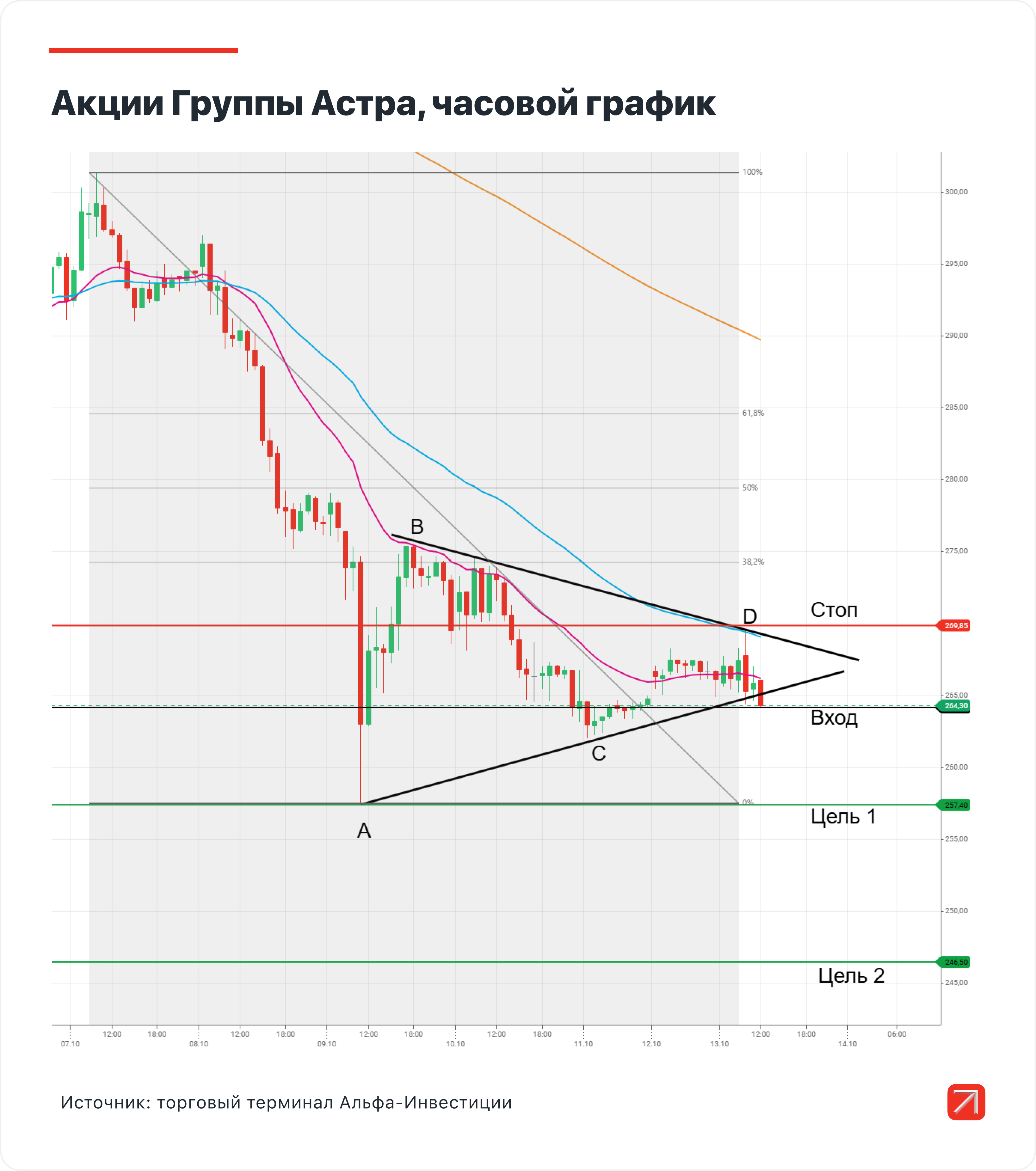 *Если этого не произойдёт и актив сразу уйдёт ниже отметки А без образования последней точки, идея станет неактуальной.