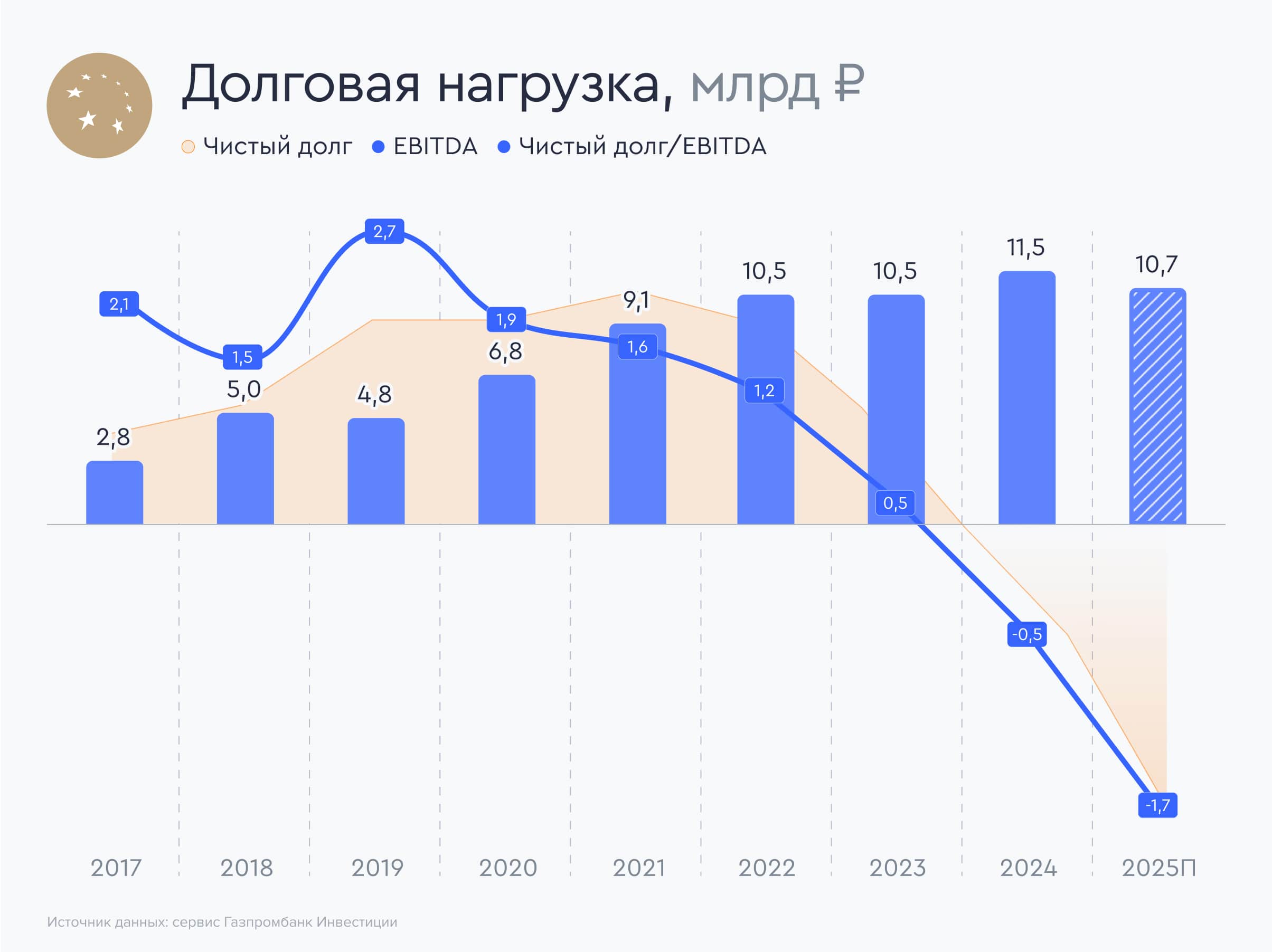 По расчетам аналитиков сервиса Газпромбанк Инвестиции, накопленные денежные средства по итогам 2025 года достигнут 24 млрд рублей — 267 рублей на акцию в виде потенциального дивиденда, или более 34% к цене открытия данной инвестидеи.