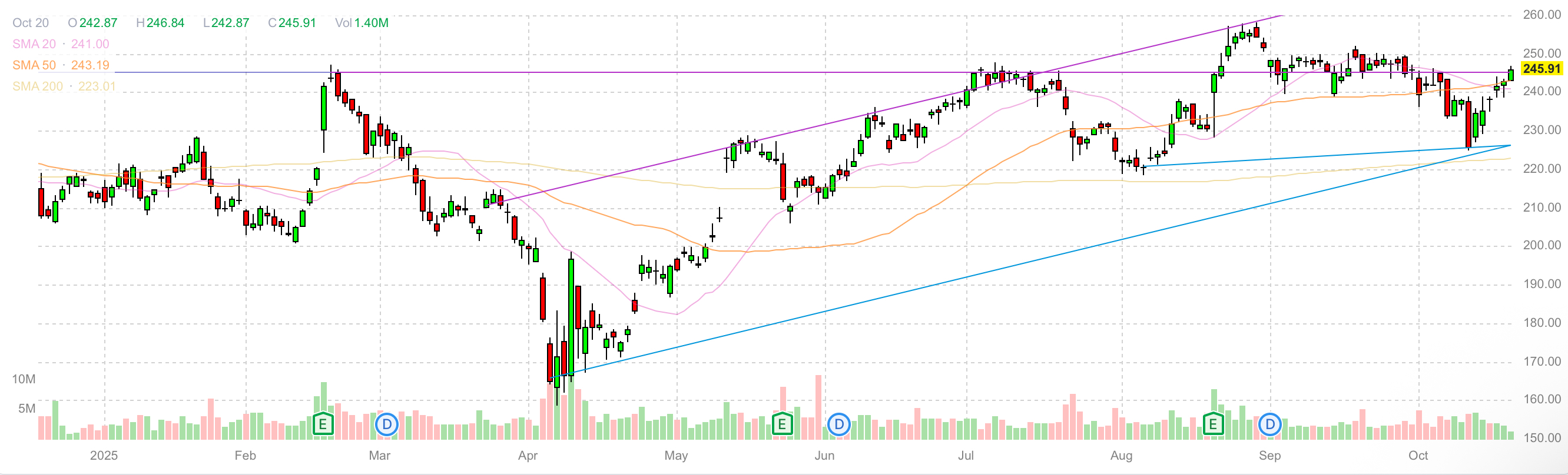 Из отчётности за 3-й квартал 2025 года видно, что Analog Devices вернулась к уверенному росту. Выручка составила $2,88 млрд, что превысило ожидания рынка, а рост по сравнению с аналогичным периодом прошлого года измерялся двузначными числами. Руководство компании прогнозирует, что в 4-м квартале 2025 года выручка составит около $3,0 млрд (плюс-минус $0,1 млрд). Этот прогноз также оказался выше средних оценок аналитиков и говорит о том, что рост компании ускорится в ближайшем квартале. Важнее самих цифр комментарии менеджмента: портфель заказов увеличился, а поступление новых заказов остаётся на высоком уровне, особенно в промышленном секторе. Это указывает на то, что мы наблюдаем не единичный всплеск, а устойчивое начало нового цикла роста в отрасли.