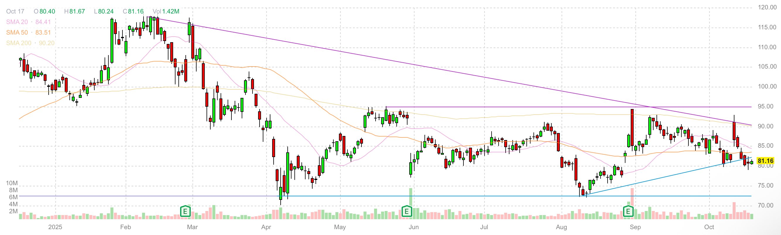 Почему это подтверждает наш прогноз на год? Во многих ИТ-бюджетах поставлена цель сократить число используемых инструментов для мониторинга и безопасности. У Elastic есть два сильных аргумента. Первый — это независимая и зрелая платформа, признанная лидером отрасли, что снижает барьеры для перехода с продуктов конкурентов, таких как Datadog, New Relic и Splunk. Второй аргумент — это нестабильность у конкурента после слияния и целевые программы миграции, которые помогают превратить интерес потенциальных клиентов в реальные подписки. В совокупности эти факторы сокращают время на заключение сделок и увеличивают вероятность крупных дополнительных продаж существующим клиентам, которые уже используют Elastic для поиска и анализа логов.