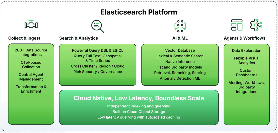 Elastic (NYSE: ESTC) — это компания-разработчик программной платформы Search AI Platform для интеллектуального поиска и анализа данных. Эта платформа помогает компаниям находить и анализировать любую информацию: от технических данных (системные журналы, показатели производительности) до событий в области безопасности и внутренних документов. В её основе платформы лежит технология Elasticsearch, на которой работают три ключевых продукта: Search (Поиск), Observability (Мониторинг) и Security (Безопасность).