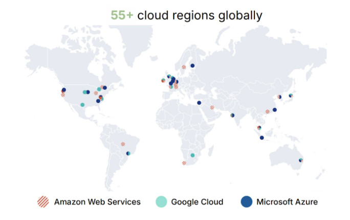 Как видно из графика выше, глобальное покрытие в более чем 55 облачных регионах, поддержка публичных облаков, гибридных моделей и установки на собственных серверах (on-prem). Смысл для нас в том, что есть соответствие требованиям по хранению данных в конкретной стране и возможность продавать решения в любом крупном географическом регионе.