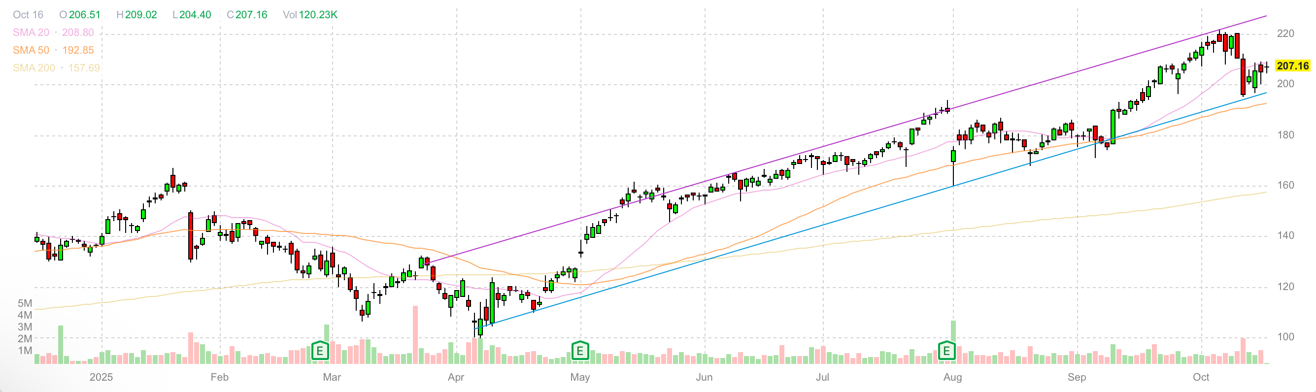 Растущий backlog обеспечивает MasTec прочную базу для многолетнего роста выручки. На 30 июня 2025 года 18-месячный backlog составил $16.45 млрд, что на 23% выше г/г и на 4% выше кв/кв. Основными драйверами роста стали заказы в сегментах Clean Energy & Infrastructure и Communications. Такой масштаб заказов стал основанием для повышения гайденса на 2025 год: выручка — $13.9–14.0 млрд, скорректированный показатель EBITDA — $1.13–1.16 млрд, скорректированный EPS — $6.23–6.44. Рекордный портфель заказов и высокая диверсификация проектов повышают устойчивость и снижают циклические риски, создавая прочный фундамент для продолжения роста в 2026 году.