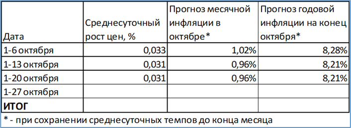 Если такой темп сохранится до конца месяца, то по итогам октября годовая инфляция поднимется до 8,2%