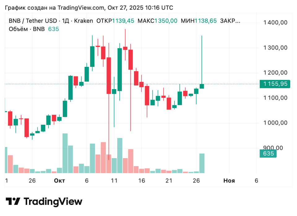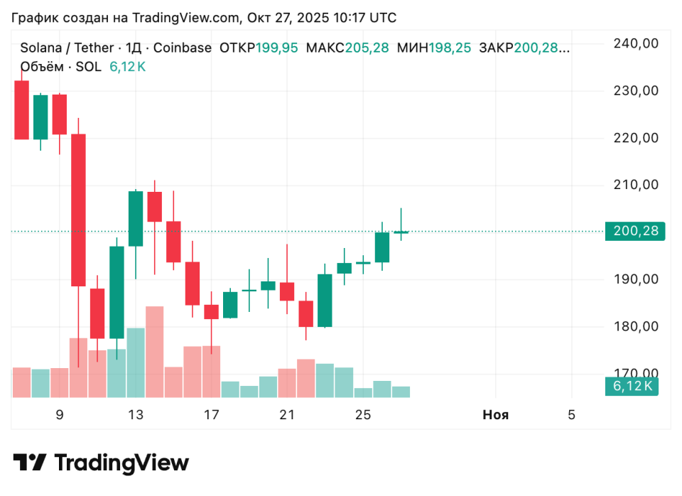 На общем фоне роста собственный токен биржи Binance, BNB, подорожал на 2,71 %, до $1155. Solana (SOL) выросла на 3,29 %, до $200 — пробив впервые в этом месяце ключевой уровень $200. Монета XRP, наоборот, подешевела до $2,62 на фоне предстоящей в ноябре разблокировки токенов и отсутствия энтузиазма по поводу ожидаемых ETF на эту криптовалюту.