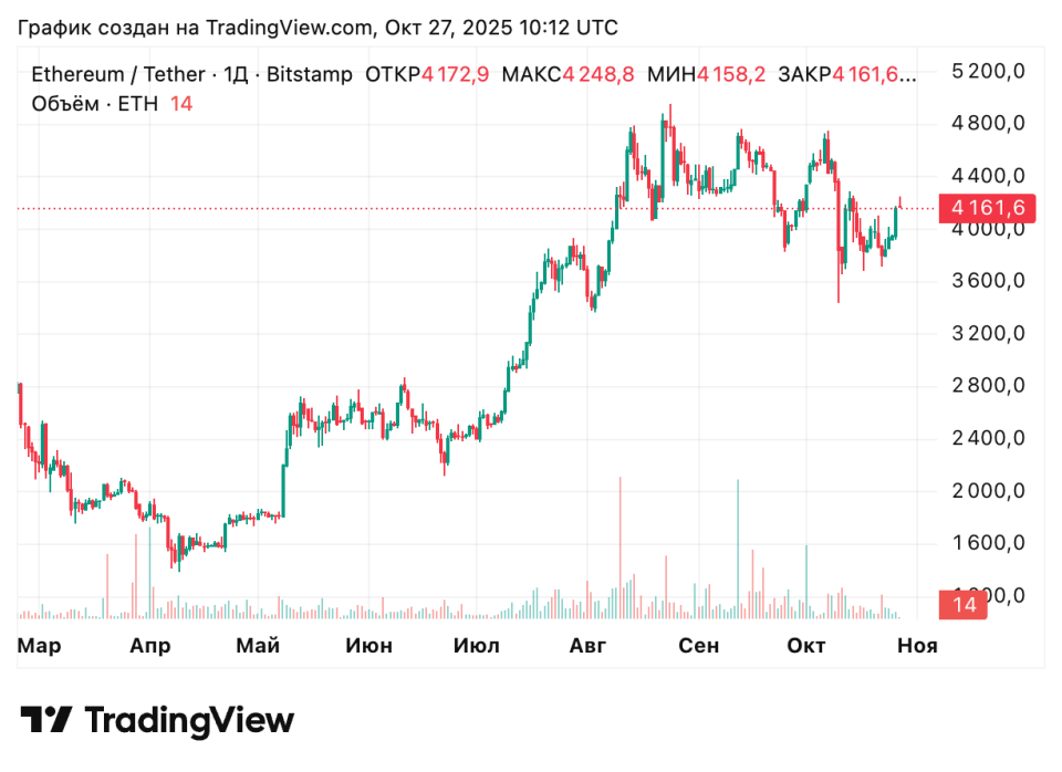 Цена первой по капитализации криптовалюты за сутки выросла на 3,05%, до $115 325, а второй — на 4,3%, до $4179. В моменте биткоин отыграл почти половину потерь после обвала 10 октября, когда цена падала до $103 000.