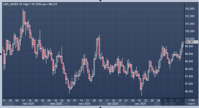 В пятницу доходность двухлетних казначейских облигаций США выросла до 3,61%, увеличившись на 12 базисных пунктов за неделю, а доходность 10-летних бумаг превысила 4,1%, поднявшись более чем на 10 базисных пунктов. В то же время доходность 10-летних государственных облигаций Германии осталась практически неизменной, составив около 2,65%, с ожидаемым ростом на 2,5 базисных пункта. Рост доходности американских облигаций укрепил доллар США, который достиг трёхмесячного максимума на уровне 99,58 против основных валют.