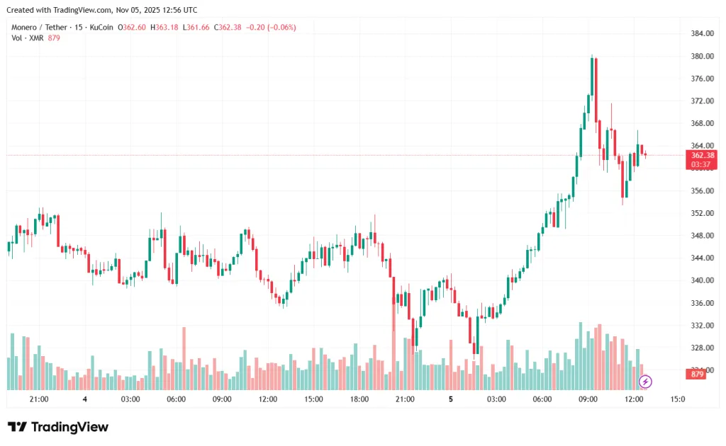 15-минутный график XMR/USDT биржи KuCoin. Источник: TradingView.