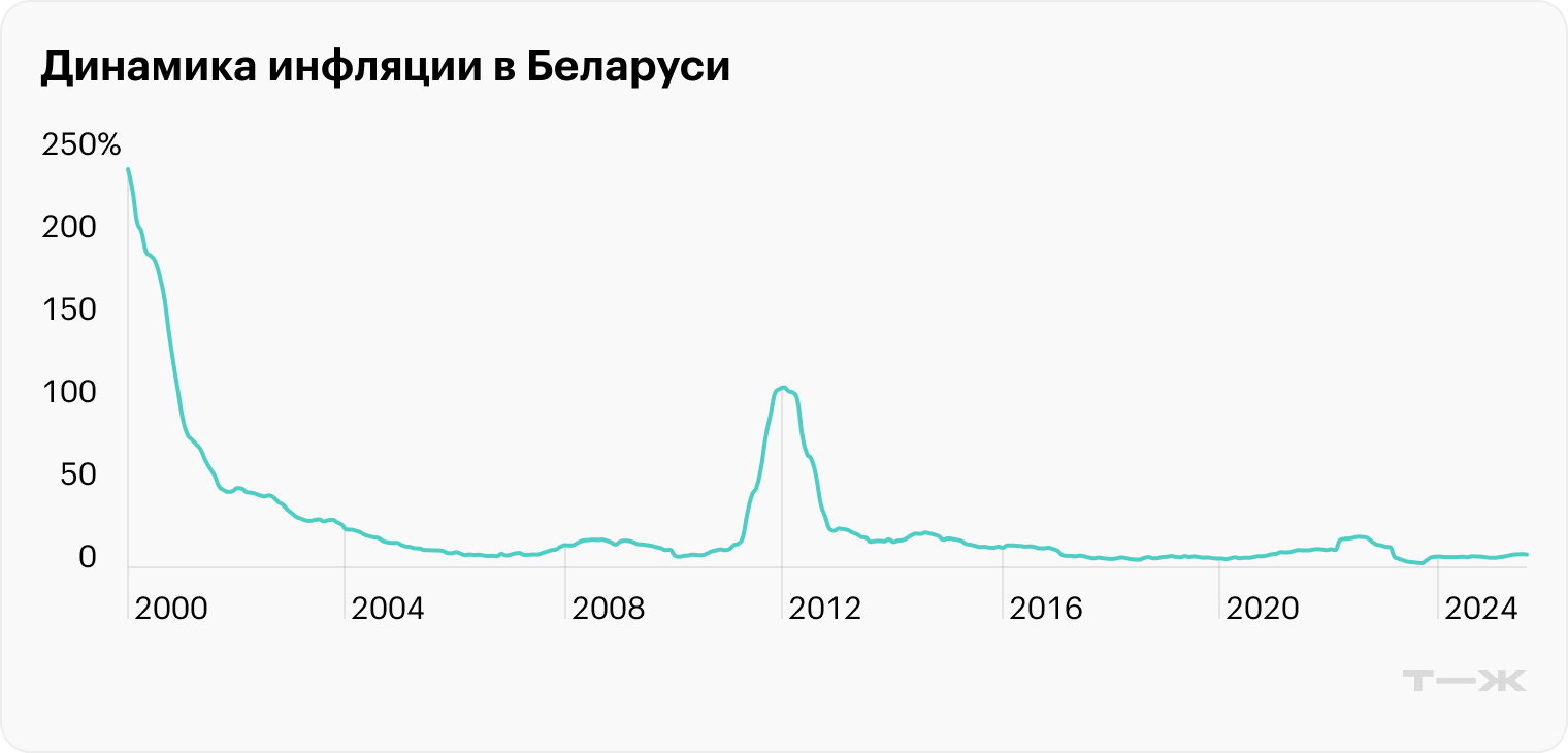 Инфляция. В 2022 году инфляция в Беларуси составила 5%, в 2023 — 5,8%. Но такие значения для страны скорее редкость.
