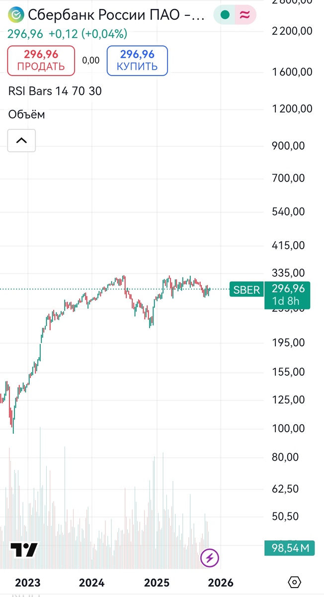Последние обзоры писал, что нужно обращать внимание на Сбербанк. Пока эти акции не пойдут вниз и там не начнётся нисходящий тренд, наш рынок не пойдёт существенно ниже.