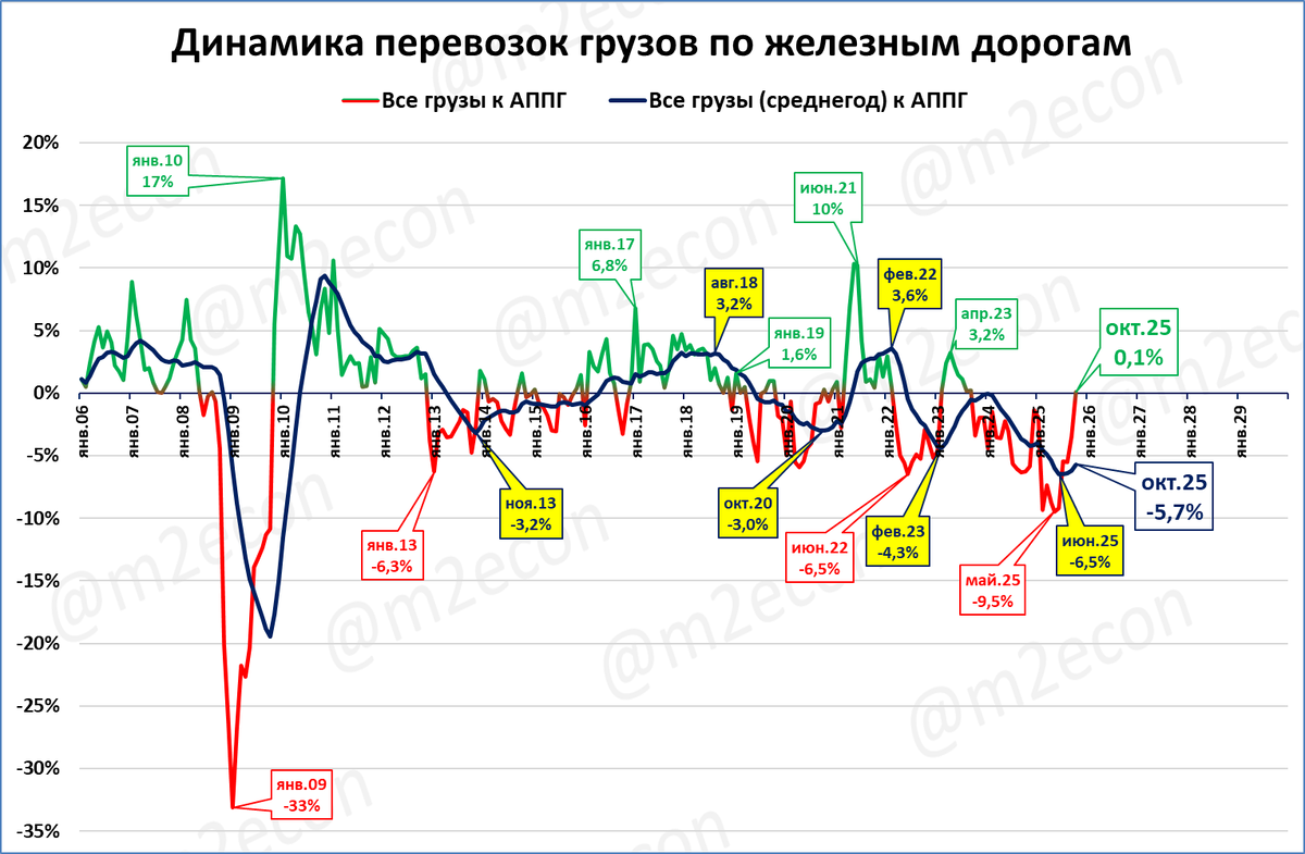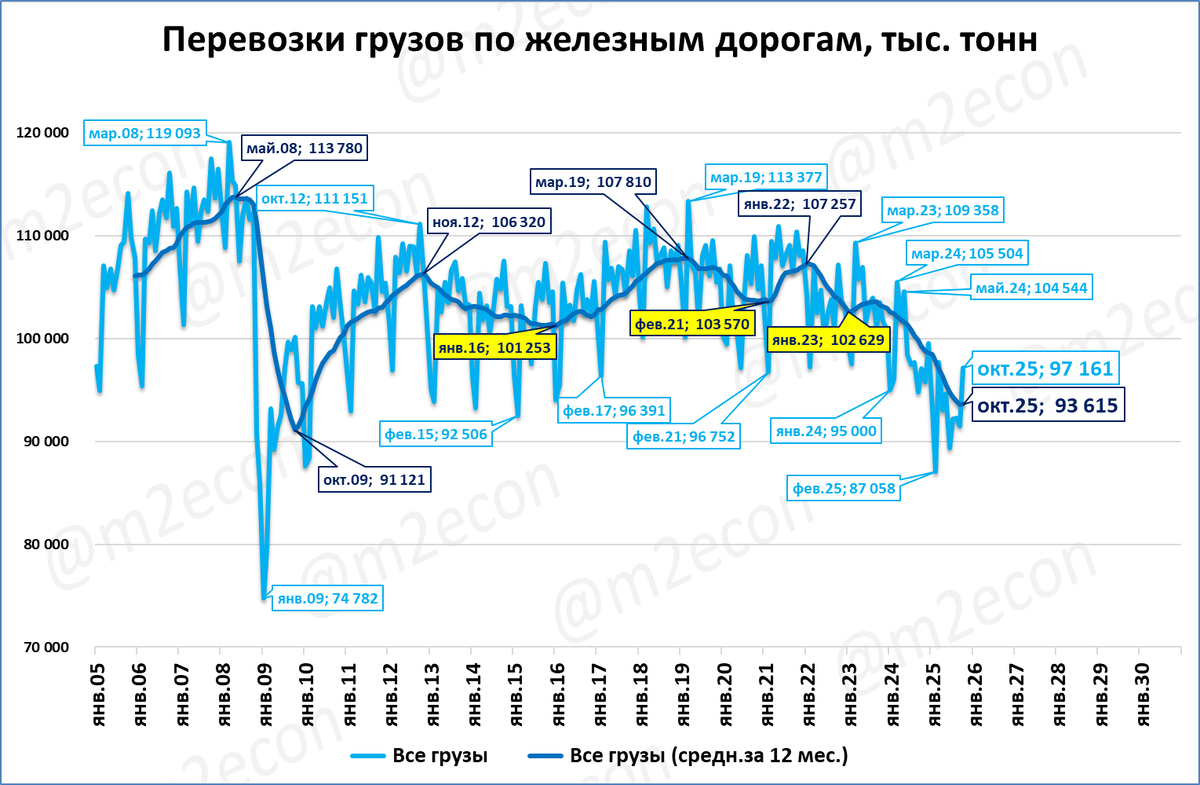 Перевозки по железным дорогам сократились очень сильно, до уровня кризисного 2009 года. И сейчас показатель на худшем за последние 15 лет уровне.