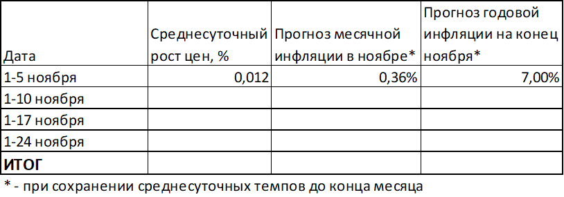 Если такой темп сохранится до конца месяца, то по итогам ноября годовая инфляция снизится до 7,0%.