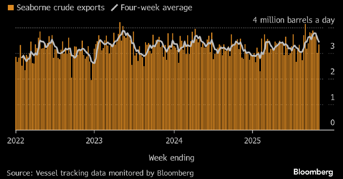 По данным Bloomberg, около 35% судов с российской нефтью, загруженных в последние четыре недели, все еще не указали окончательного пункта назначения. Кроме того, растет объем российской нефти, которая скапливается в море, не найдя покупателя, и превращает суда в плавучие хранилища.