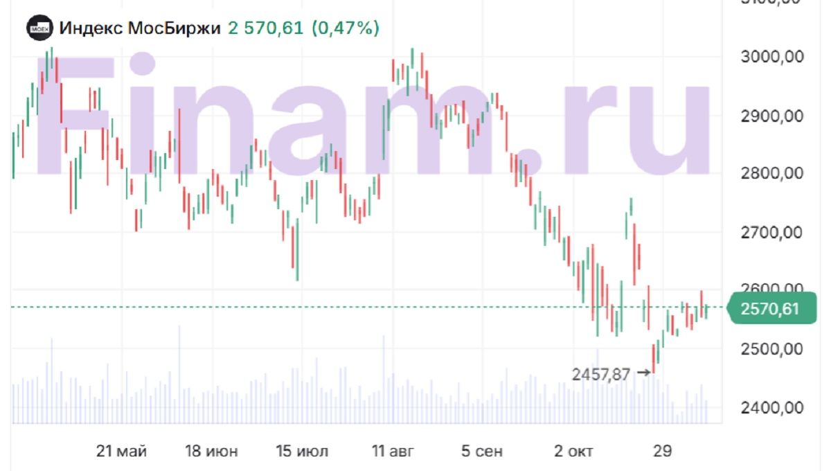 В результате индексу МосБиржи с 23 октября не удается устойчиво преодолеть уровень 2600 пунктов, а 28 октября он даже поставил новый минимум с начала года на уровне 2431,35 (с учетом динамики на дополнительных сессиях).