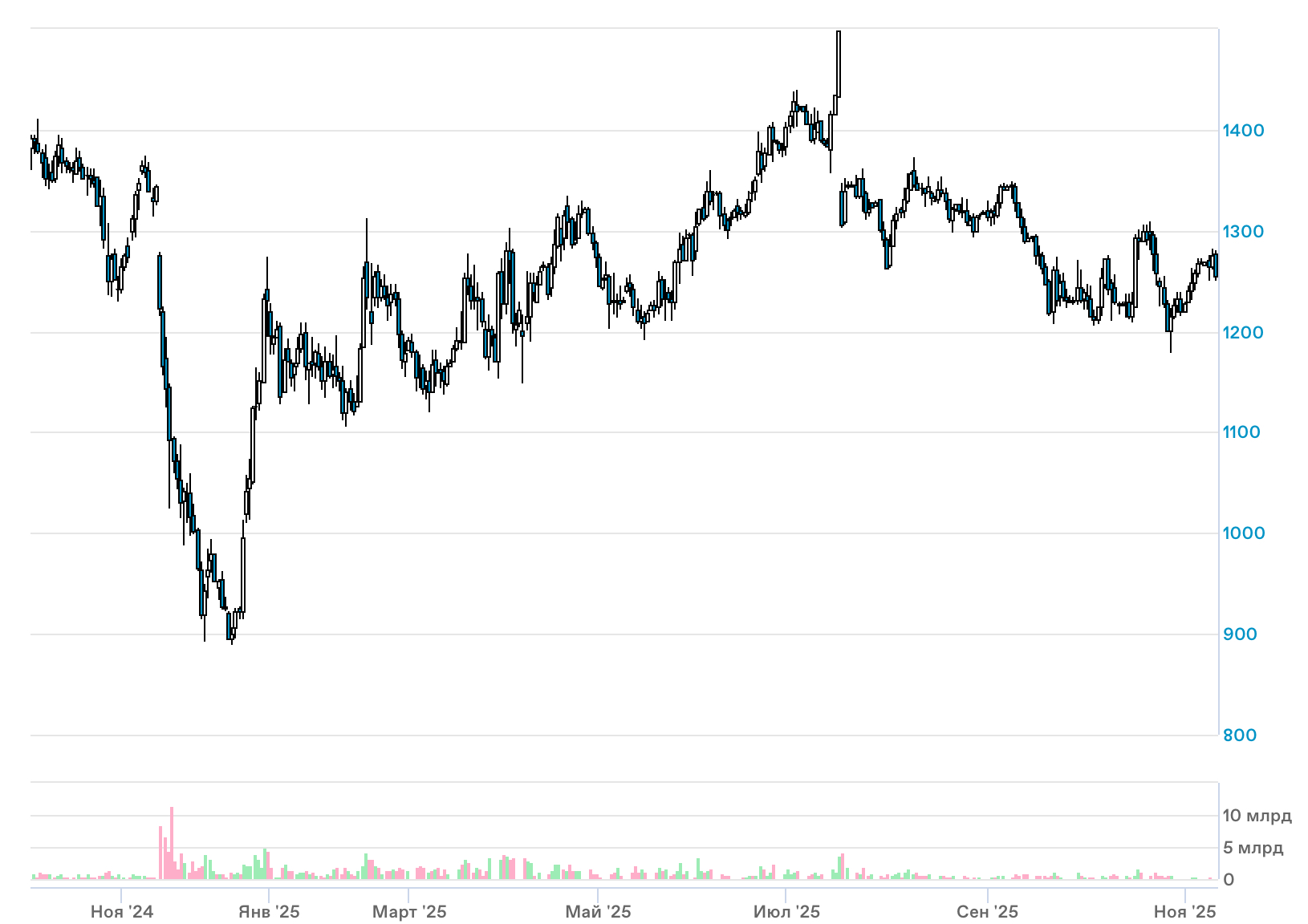 - Недооцененность компании по финансовым мультипликаторам. По итогам 1П2025 значение P/E составляет 3,4х, показатель EV/EBITDA равен 1,94х.