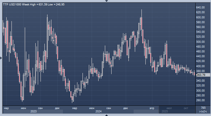 Фьючерсы на основные марки газа достигли минимума с мая 2024 года из-за прогнозов потепления, что снижает спрос на отопление. В условиях продолжительного притока тепла и возобновления обсуждений о мирном урегулировании украинского конфликта рынок вышел из периода узких торговых диапазонов.