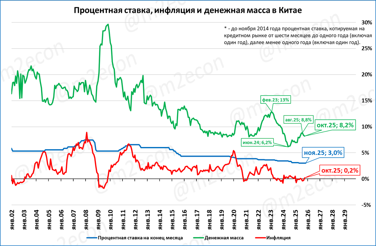 За октябрь рост денежной массы Китая составил 8,2% к октябрю 2024 года.