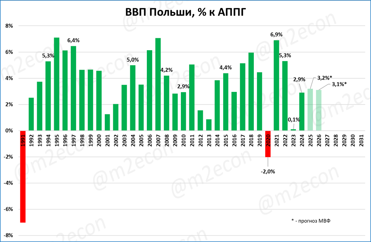 МВФ прогнозирует рост экономики Польши на 3,2% в 2025 году.