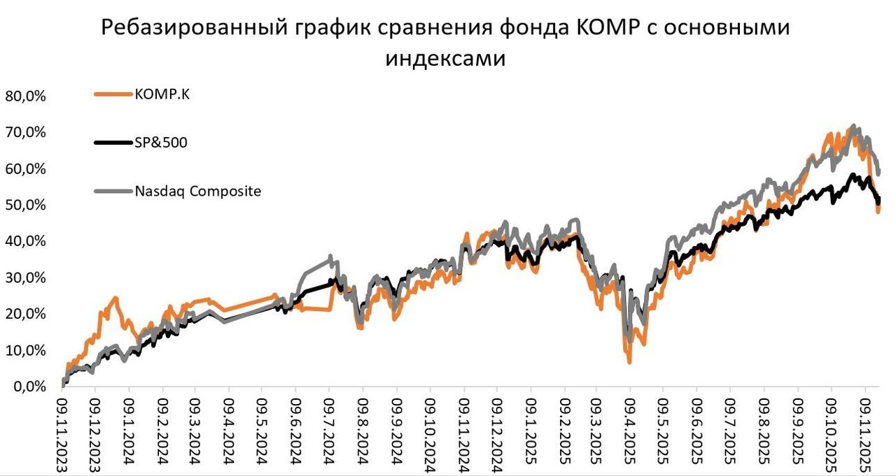 Американский IT-сектор заметно скорректировался, что делает текущий момент привлекательным для входа инвесторов: оценки снизились, а фундаментально сильные компании торгуются дешевле. На этом фоне KOMP выглядит особенно интересно, поскольку представляет собой широкую компиляцию технологических и инновационных компаний, позволяя получить диверсифицированную сборку сектора именно на просадке.