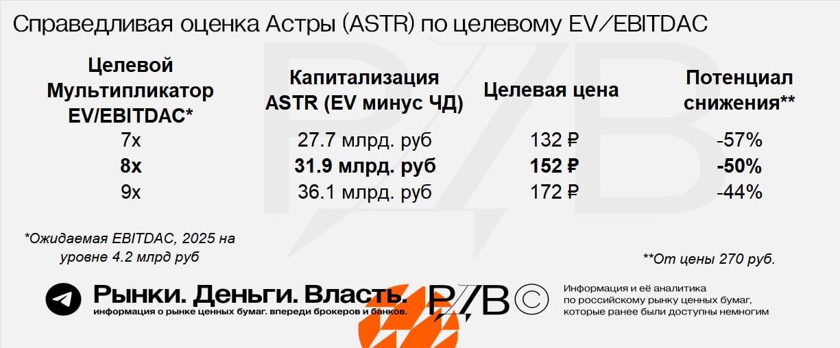 C учетом Чистого Долга справедливая цена по форвардному мультипликатору для ASTR составляет 152 руб.