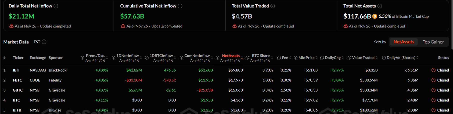 Инвесторы также нарастили позиции в продуктах на базе первой криптовалюты. Общий приток в спотовые биткоин-ETF достиг $21,12 млн. Единственным фондом с отрицательным результатом стал FBTC от Fidelity (-$33,3).
