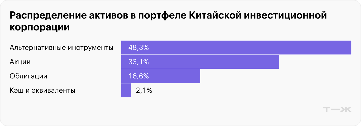 Портфель охватывает основные классы активов: акции, облигации, денежные эквиваленты и альтернативные инструменты, в частности инвестирование в венчурные проекты на разных стадиях их развития. В КНР компания инвестирует только в финансовые институты с госучастием. Доля вложений на внутреннем рынке — 36,5%. Остальное — зарубежные активы.