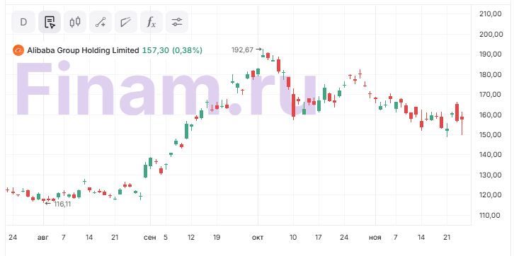 Целевая цена для акций Alibaba (торгуются в Гонконге), каждая из которых эквивалентна 1/8 ADS, — HKD 176,1. Это соответствует рейтингу «Покупать» и апсайду 16,9%.